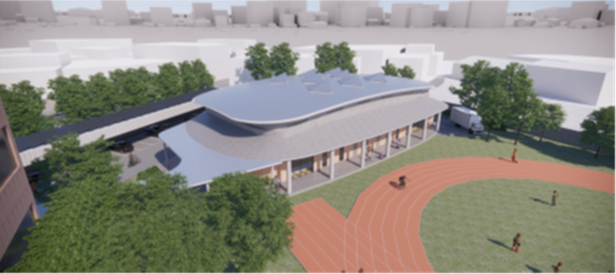 As for the newly built auditorium at Hezuo Elementary School in Fengyuan District, it stood out with its large-span, curved steel roof that seamlessly blends into the surrounding landscape. The structure presents a light and open architectural form, with the entrance greenbelt and covered walkway jointly fostering a calm and welcoming atmosphere conducive to learning.