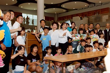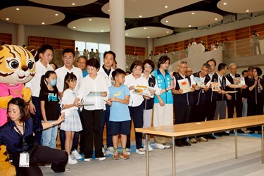 Mayor Lu personally took part in the book-passing relay, joining citizens to complete the shelving ceremony. To commemorate the library’s opening, she announced two exclusive keepsakes: a “Flower Chair”(「花椅」) keychain designed by Sejima and Nishizawa, and 80,000 limited-edition “Bugcat Capoo” library cards(「貓貓蟲咖波」閱讀證)—with over 50,000 applications already received. She encouraged the public to apply for these special mementos celebrating the library’s grand debut.