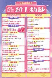 The Council for Hakka Affairs, Taichung City Government, added that, to make it easier for young students to return home and to allow more visitors to take part in this annual Hakka community event, the festival will kick off early on February 27 in coordination with the long holiday weekend. Up to 16 series activities are planned during the event period, including the “Community Growth Classroom Cultural and Creative Showcase” and the “Hakka Specialty Industry Exhibition and Sales Fair,” with hundreds of booths. The main stage will also present a wide range of cultural and arts performances, inviting the public to visit Dongshi and experience the profound heritage of Hakka culture through taste, sight, and the heart. For more information, please visit the “Taichung Dongshi Sindingban Festival” Facebook fan page at https://www.facebook.com/SinDingBan.