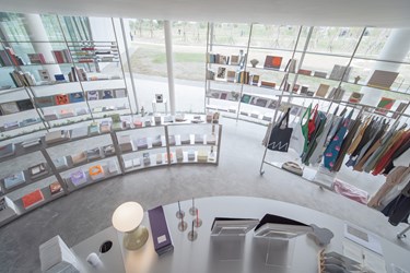 The Cultural Affairs Bureau of Taichung City Government explained that the Pon Ding × Taichung Green Museumbrary shop breaks from the conventional approach of museum shops that primarily sell cultural and creative products, creating a bookstore centered on publishing curation. The shelving and tiered display system in the space was designed by Taiwanese industrial designer Shuei-Yuan Yang, echoing the open and fluid spatial characteristics of the Taichung Green Museumbrary’s architecture. Through themed book selections and publications displays, it presents a specific artistic thematic ambience, and will also plan talks and small-scale exchange events in the future, allowing reading to become a way for visitors to understand artistic creation. The Pon Ding space also features a curated cultural selection area, including Taichung Green Museumbrary cultural and creative merchandise and design selections, curating items that align with the Taichung Green Museumbrary’s overall style, so that the museum’s artistic experience can extend into everyday life.