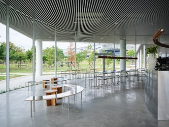 Pharos Coffee on the first floor embraces the concept of integrating coffee into everyday life, offering light-roast single-origin pour-over coffee, light-roast espresso, and light refreshments such as handmade bread. The café features furniture produced by a Taiwan-based design team and invited Taichung-based synthesizer musician Nick Tsai to create a bespoke auditory ambience for the space, making sound part of the immersive experience. “Pharos” is derived from the Greek word meaning “lighthouse,” symbolizing that within the transparent architecture of Taichung Green Museumbrary, this space is like a lighthouse guiding flavors, enabling visitors to linger, focus on the essence of coffee, and enjoy a calm and comfortable moment.