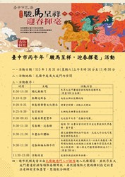 Galloping into the New Year! With the Lunar New Year approaching, the Taichung City Confucius Temple, in collaboration with the Taichung City Qingxi New Arts Association, will hold the Bingwu Year “Auspicious Horses Present Blessings, Welcoming Spring Calligraphy” event at 8:50 a.m. on January 31, inviting 30 calligraphers, New Year print artists, and printmakers to create works on site, allowing the public to collect New Year characters and New Year prints free of charge. Wu Shih-wei, Director General of the Civil Affairs Bureau, Taichung City Government, stated that 600 sets of Spring Festival couplets and New Year print paper have been specially prepared this year for free distribution. The venue will also feature a New Year print rubbing experience area and a “Welcoming Spring and Receiving Blessings” wooden ornament DIY pendant making area, so that parents and children can enjoy the activities together. Citizens are welcome to come and receive the limited-quantity Spring Festival couplets and participate in these festive activities to joyfully welcome the Lunar New Year.