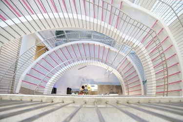 The building's exterior further supports sustainability through a double-layer thermal insulation façade that effectively blocks heat transfer and reduces the load on air-conditioning systems. In addition, the library incorporates an induced ventilation strategy. During winter and spring, it adopts an intermittent air-conditioning concept, integrating ventilation towers and a curved staircase to harness the chimney effect. This design draws in fresh outdoor air, promotes natural cross-ventilation, and reduces reliance on mechanical cooling—fulfilling the library's energy-saving and sustainability goals while ensuring excellent indoor air quality. The result is a truly “breathing library."