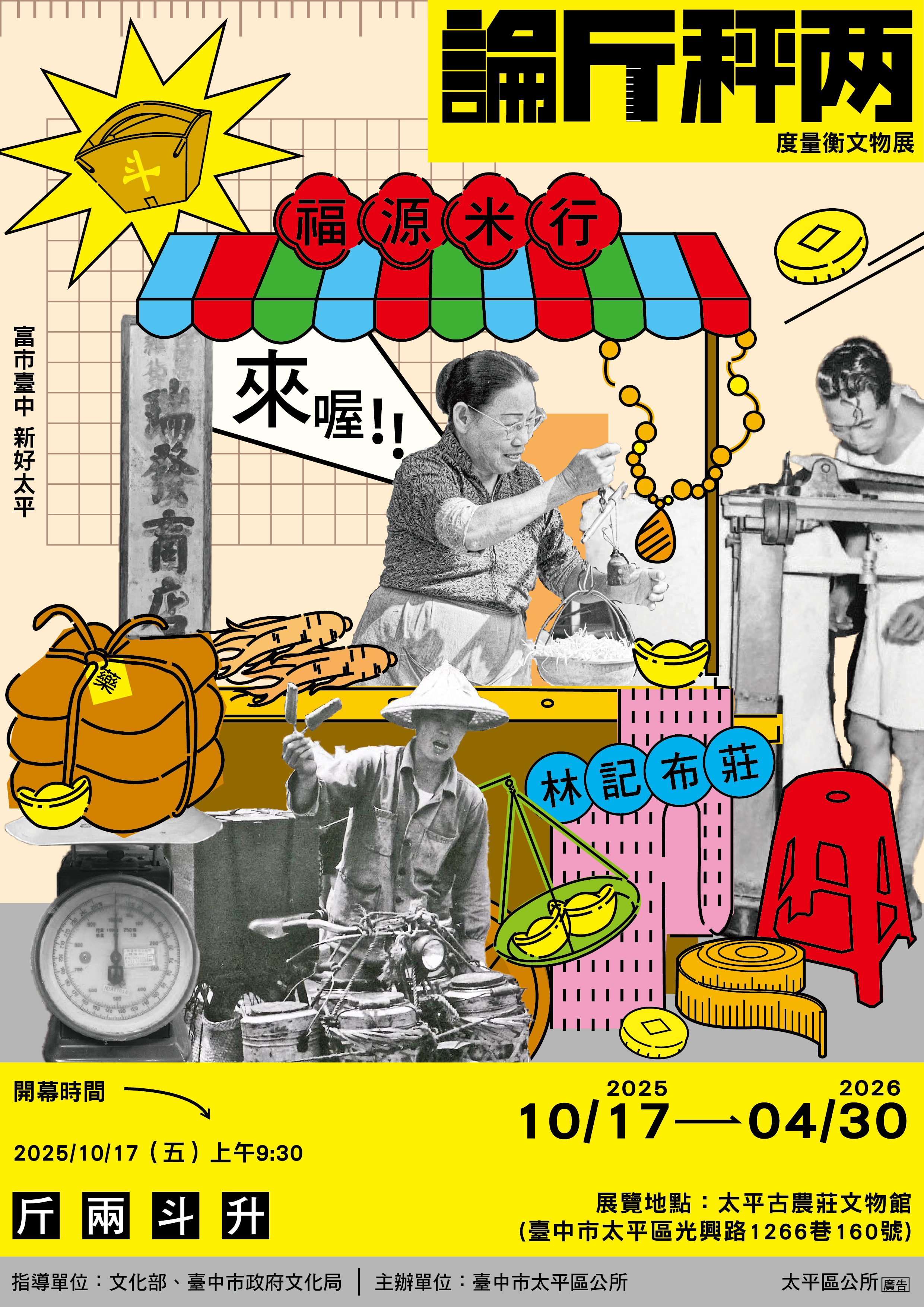 Today, ready-made dishes and pre-order options make it easier than ever to prepare holiday meals, and fewer people cook everything from scratch as in the past. Still, the New Year inevitably brings a return to weighing and measuring, whether weighing ingredients or, inevitably, stepping on a scale oneself. During this period, Taiping Old times Countryside Heritage Museum is presenting an exhibition themed around traditional weights and measures, inviting visitors to experience how a classic steelyard scale is used to weigh vegetables, how a cloth measuring tape is used for tailoring, and, most popular of all, how it feels to stand on an oversized platform scale, a favorite hands-on activity for visitors of all ages. Bring your friends and family and see, for fun, just how much everyone “weighs”
