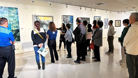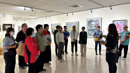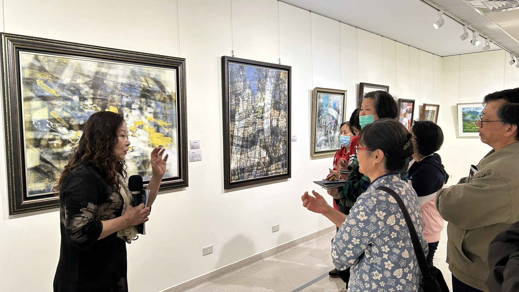 The Taichung City Huludun Cultural Center stated that Lai Jui-Chen was born in Hualien, where the green mountains, clear waters, and simple life of a farming family became the earliest nourishment for her artistic sensibility. During junior high school, she repeatedly copied tiger paintings by Lin Yu-shan, a master of Taiwanese gouache painting, laying a solid foundation for her painting skills. After nearly thirty years devoted to education, she retired and took up the brush once again, embarking on a creative journey of self dialogue. In this exhibition, Lai Jui-Chen 's works, including “Dawn” and “Impression of Nan’ao”, feature flowing layers of color and striking contrasts of light and shadow, revealing both the rhythms of nature and the emotional transformation of the artist’s life experiences.