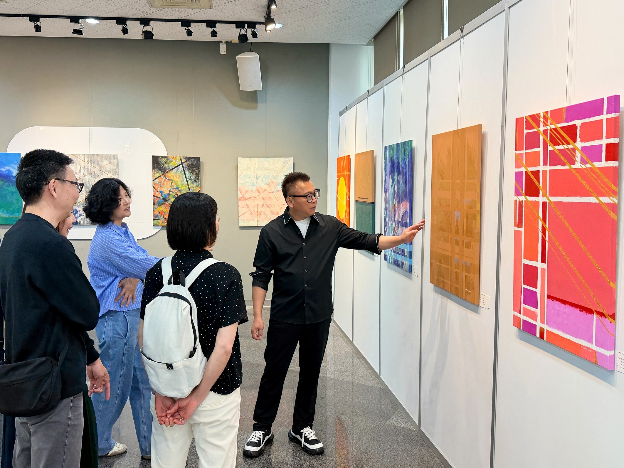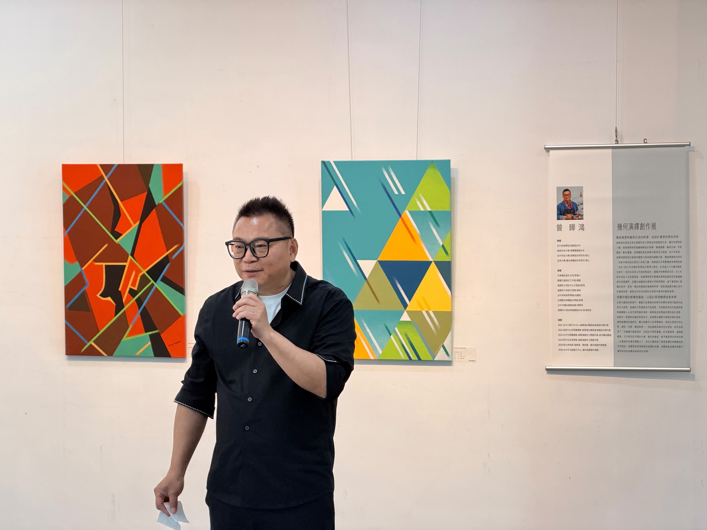 When cool geometric lines meet freely flowing color, what kind of artistic spark will be ignited? On March 21, 2026, the Taichung City Tun District Art Center held the opening ceremony for “Yeh-Hung Tseng: Geometric Interpretation Creative Exhibition.” This exhibition presents the rational thinking that Yeh-Hung Tseng has cultivated through more than 35 years in the design field. Moving from designer to artist, he integrates the life energy drawn from his love of travel and arts promotion with the art of painting, achieving an artistic philosophy in which logic and inner consciousness intertwine. The exhibition runs from now through April 19, and members of the public are sincerely invited to experience this artistic feast and discover how a world of emotion can be constructed through a rational framework.